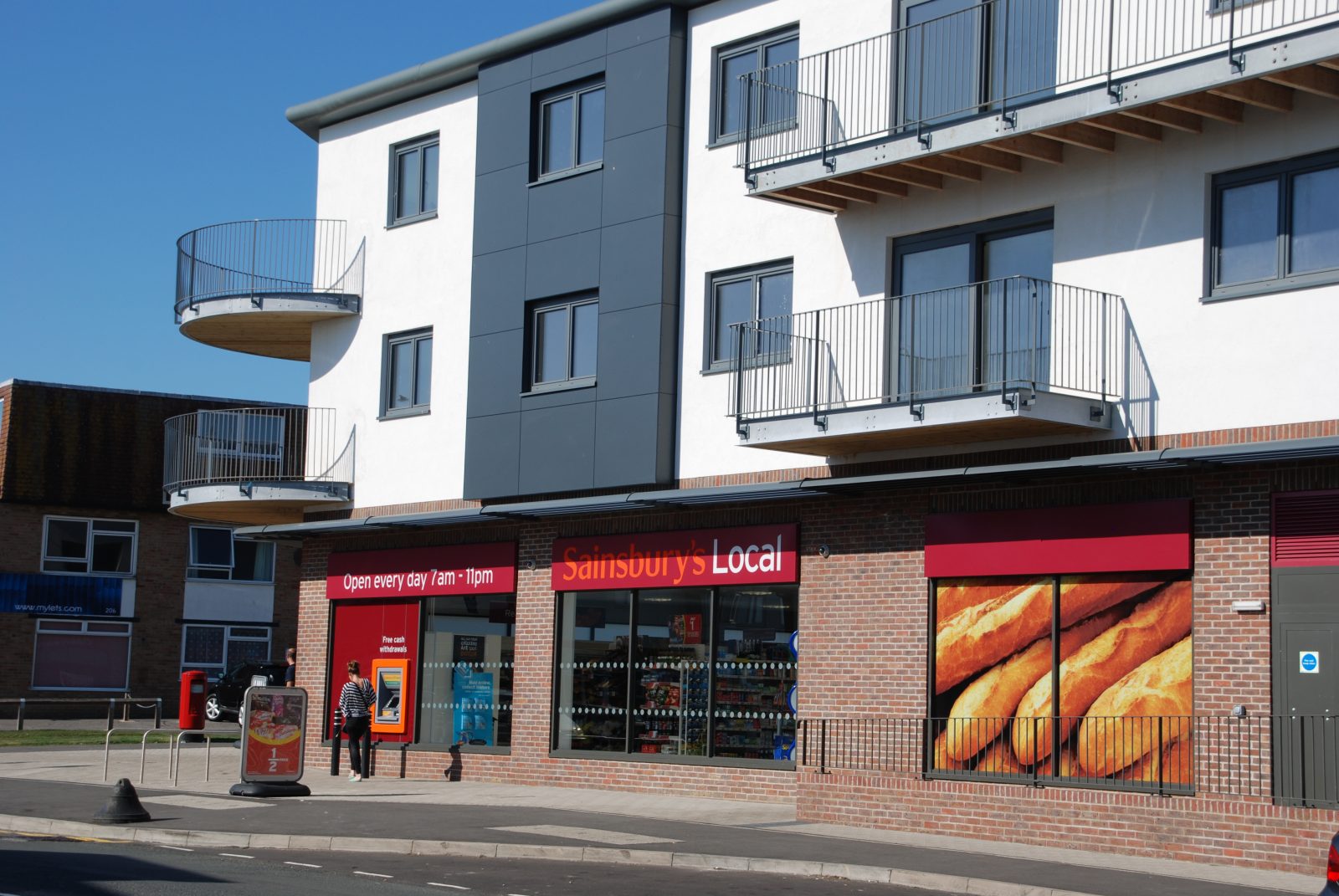 Built in 2011 for JKC Management and designed by architect Chris Day, Dorothy Court is now a landmark on the South Coast Rd in Peacehaven, East Sussex. With Sainsburys Local supermarket on the ground floor and fourteen stylish apartments above, the 2,175 m² building was fully tenanted upon completion.