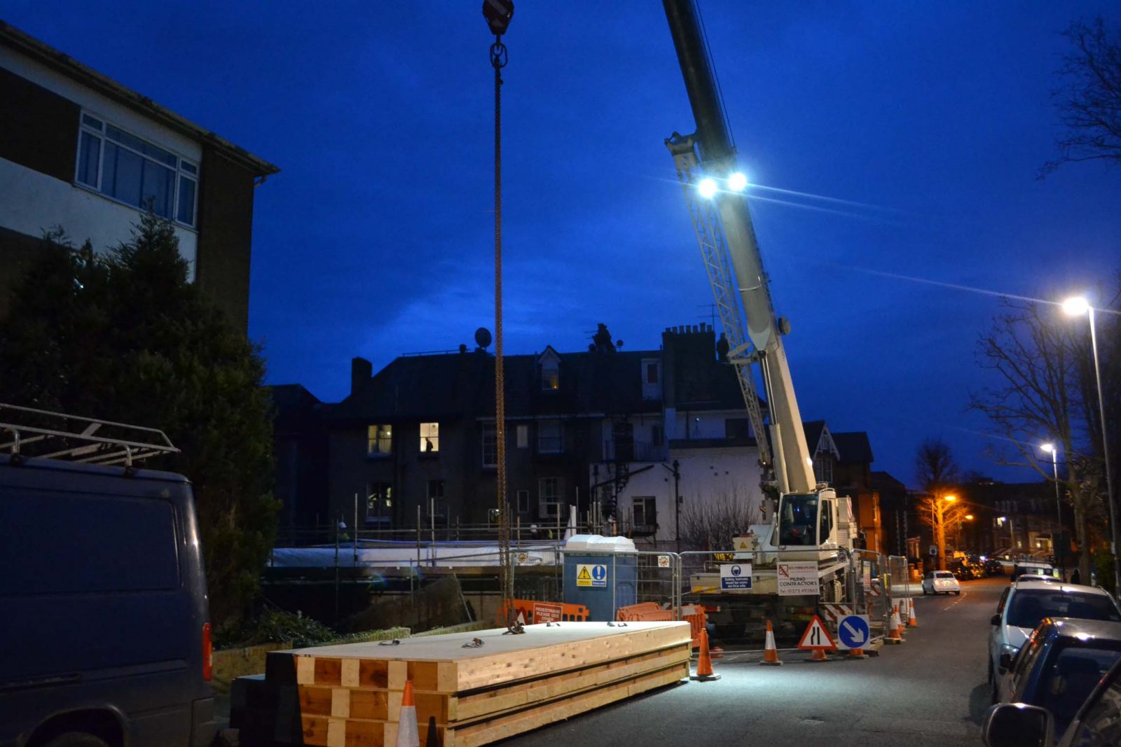 The dwelling was designed by an architect as a self build on a small plot of undeveloped land in Brighton. Due to the nature of the site piling had to be carried out prior to the erection of the building.