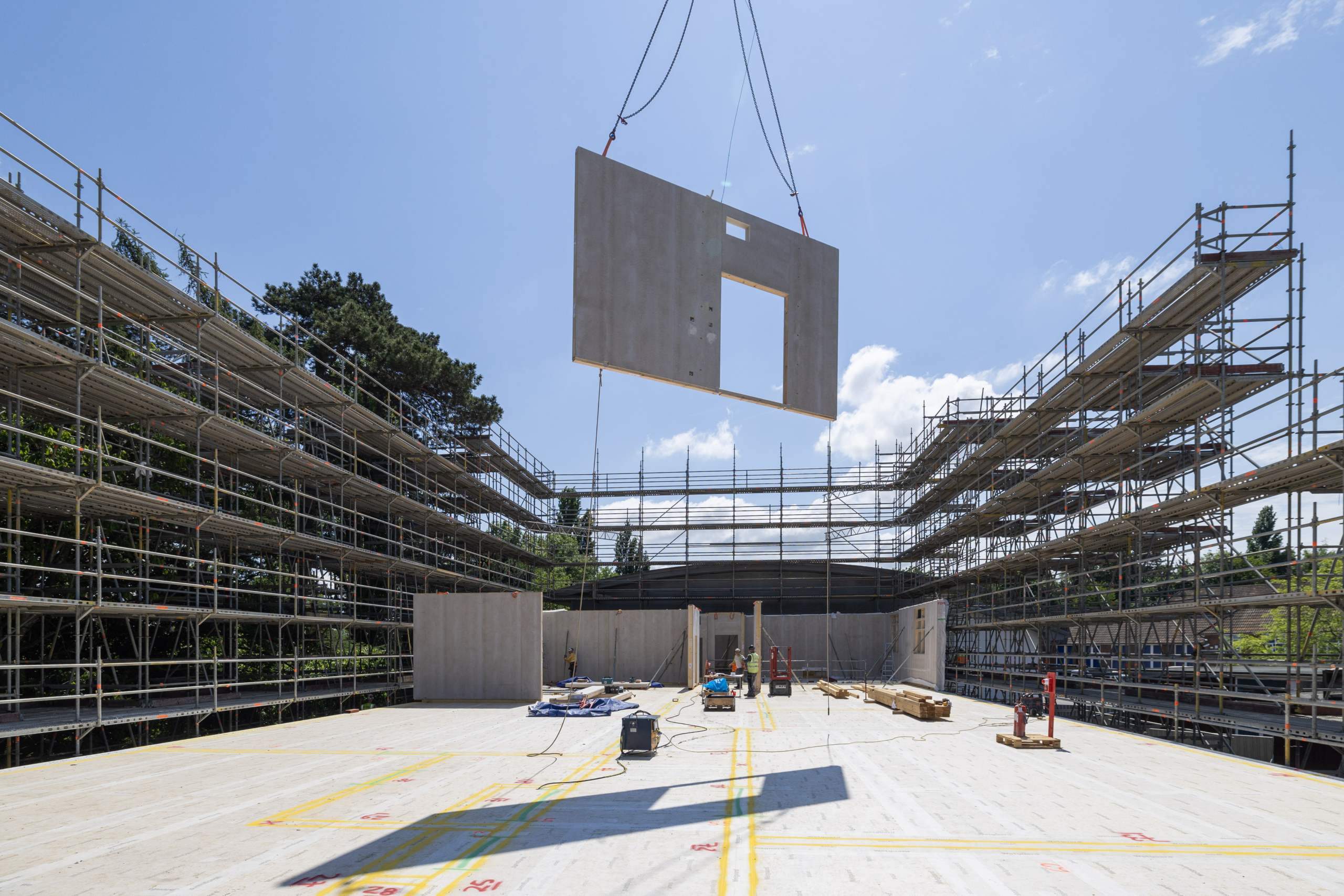 Using advanced off-site manufacturing, Streif produced large-format prefabricated wall, floor, and roof elements. These were delivered to site ready for rapid assembly, enabling efficient construction despite the complexities of building فوق historic tunnels and within a constrained rail-side location.