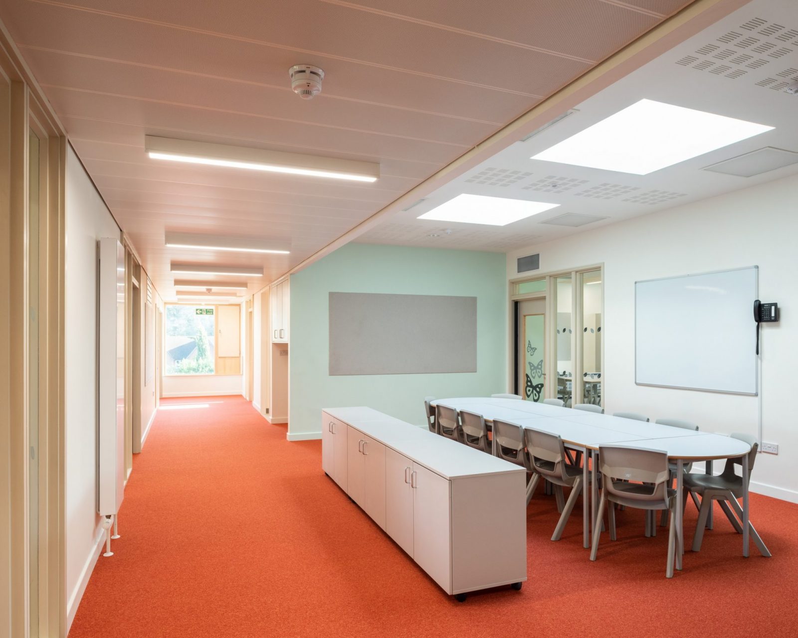 The school is designed to encourage community use, with a learning resource area at the heart of the plan. Set over two floors, the school boasts 11 classrooms, group working rooms, a library, a new multi-use games area (MUGA) and grassed play areas, while maintaining stunning views within its historic deer park setting. Stoneham Park Primary Academy is actually the pilot project for the Hampshire County Council standard model ‘schoolhouse’. Conceived as a lean, compact and energy efficient two-storey form, the building is modest in scale and future-proofed for expansion to the east.