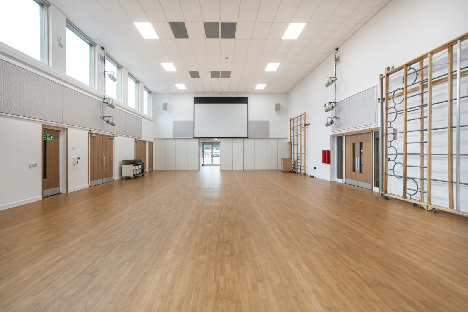 The 2,250m2 two-storey School was constructed using the Streif integrated closed panel building system over two phases, by just six operatives plus the crane driver. The first phase which was completed over a week ahead of schedule consisted of the main classrooms and amenity areas. The more complex second phase of the build consisted of a large double height sports hall with long glazed arrays to the East and West elevations to flood the hall with light. These glazed arrays required sizeable glulams and steel portal frames to enhance the structural support provided by our panels.