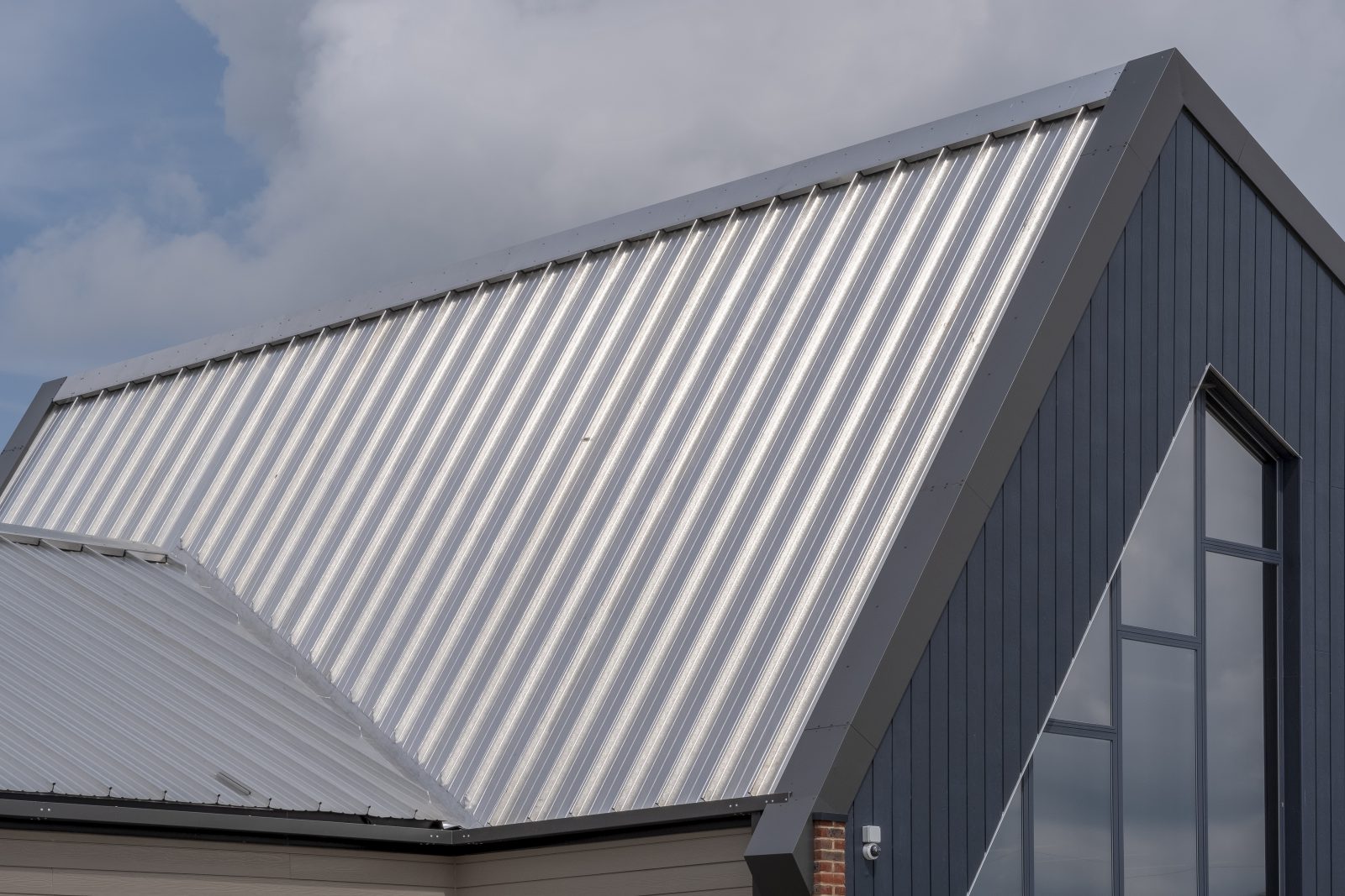 The windows and doors were AuraPlus timber aluminium by Rationel, all of which were factory fitted with the exception of the large entrance array which was fitted on site. All the externally clad walls were factory sub-battened, insulated and breather membraned, allowing the main contractor to simply fix the Cedral Click cladding on site. The brick cavity walls were again externally insulated in the factory using a specialist product Isover Kontur, allowing the bricklayers to simply knock through helical twist ties and run up their face brickwork.